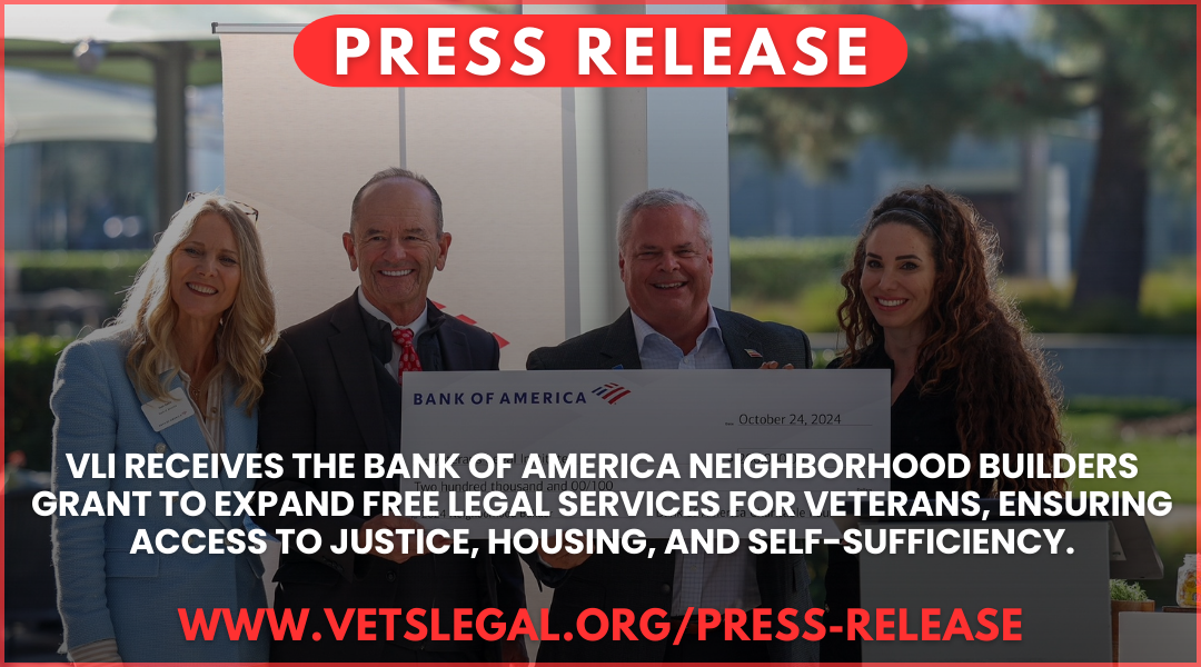 “Veterans Legal Institute is thrilled to partner with Bank of America to ensure access to justice for our heroes in need,” said Antoinette Naddour, co-founder and executive director, Veterans Legal Institute. “This funding will create more space to prevent veteran homelessness and reduce veteran suicide by giving our deserving heroes a hand up.”